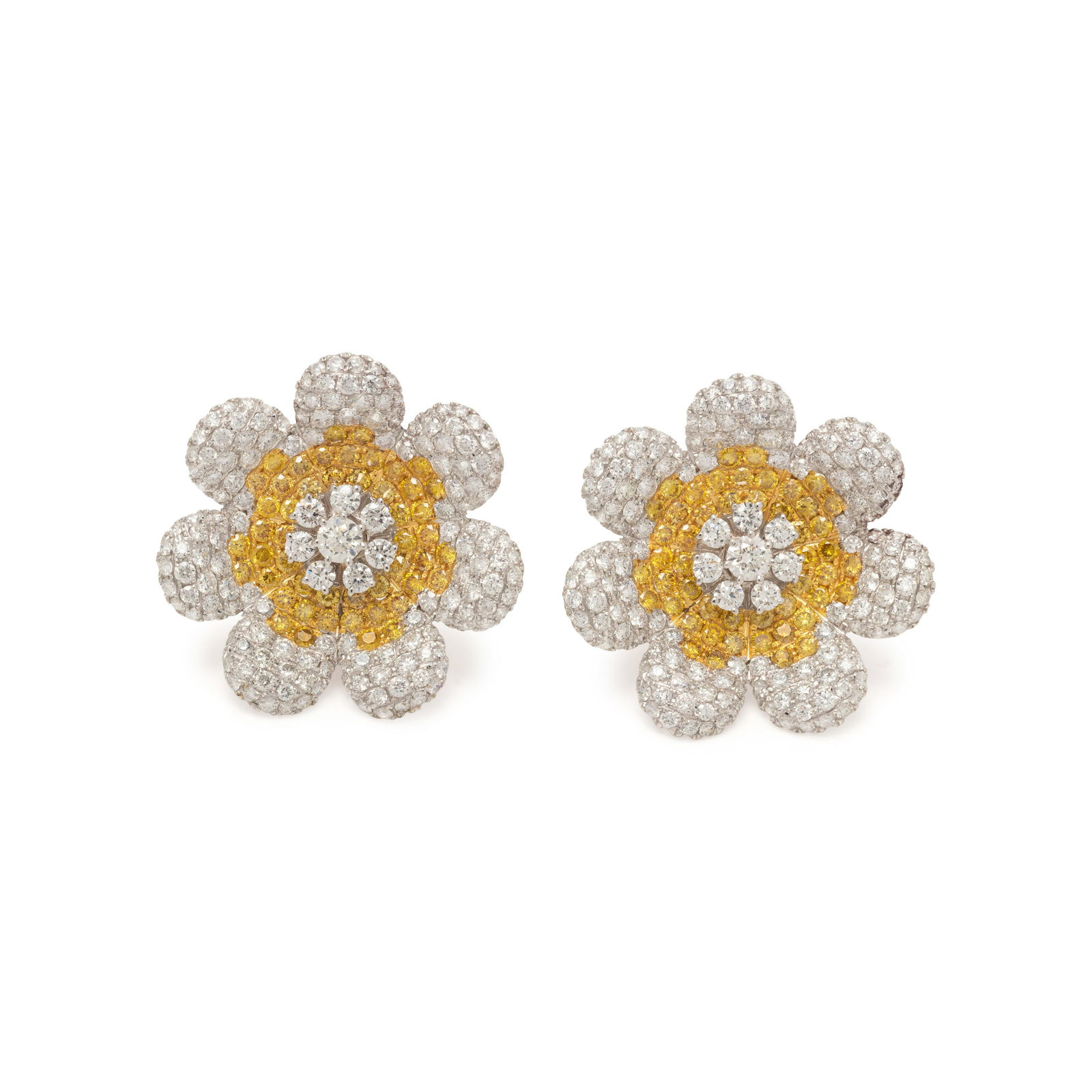 DIAMOND AND COLORED DIAMOND FLOWER EARCLIPS