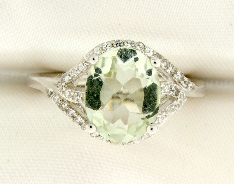 Green Amethyst: 2.10 CT & Diamond: .12 Ct Ring14k Y/G