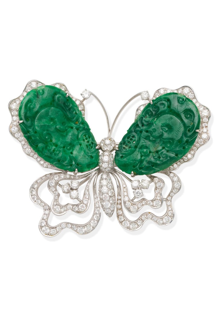 8.31CT NATURAL DIAMOND EMERALD PENDANT STAR 14kt Gold **WOW Glass & Metal Butterfly Pin Costume JewelryChinese 14K Gold Carved Green Jade Butterfly Brooch 1900, W 2.2" 9.7 g 1 PCMar 19, 2026Gump's 14k Yellow Gold Carved Jade and Ruby Butterfly Brooch PinMar 15, 202614k Yellow Gold Green Tourmaline Diamond and Ruby Butterfly Pin BroochMar 15, 202618K White Gold Tourmaline & Diamond Dragonfly Tremblant BroochMar 12, 2026A GEM-SET AND DIAMOND BUTTERFLY BROOCH * brilliant and rose-cut diamonds * circular-cut rubies *Mar 10, 2026Natural Jadeite Dragonfly Pendant BroochMar 18, 2026Platinum Jade Diamond Pendant Brooch 1.00 Ct 44 Diamonds3 days LeftA CHINESE JADEITE 'BUTTERFLY' PENDANT7 days LeftJeff Largo Navajo Sterling Malachite Butterfly BroochApr 04, 20261960's 14K White Gold Emerald Diamond Brooch 15 Ct Emeralds 89 Diamonds4 days LeftChinese Jade Jadeite, Gold on Sterling BroochMar 20, 2026Fine Art Deco Platinum, Diamond & Emerald Brooch,Mar 13, 2026Art Deco Platinum Brooch with Jade and 38 Diamonds2 days LeftDavid Webb: An 18K Gold, Platinum and Diamond Butterfly Brooch1 day Left
