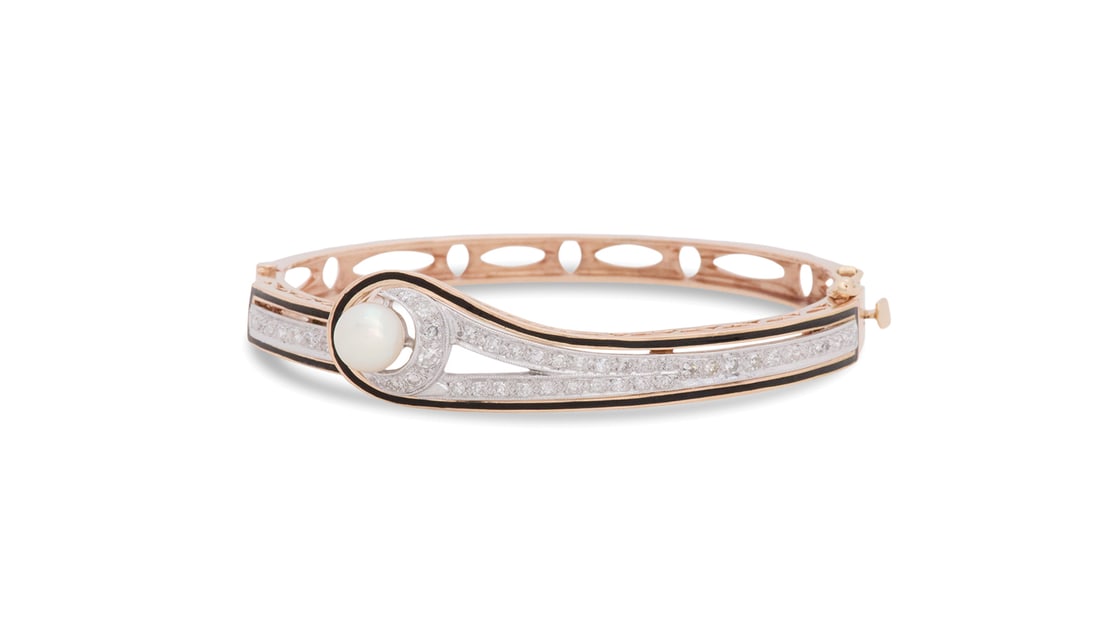 Diamond and Pearl Bangle Bracelet