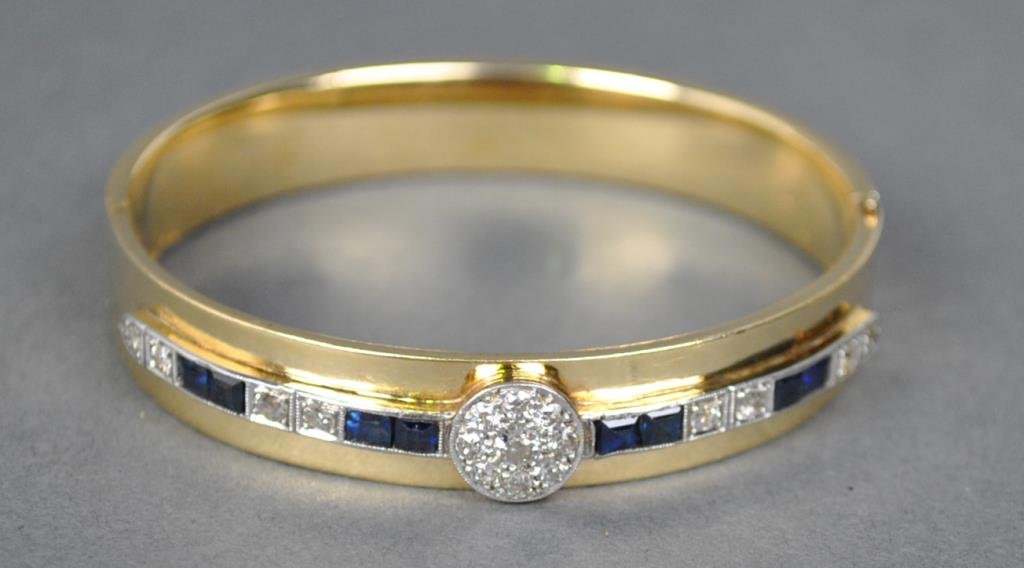 DIAMOND & SAPPHIRE HINGED BANGLE, 1.35CTW