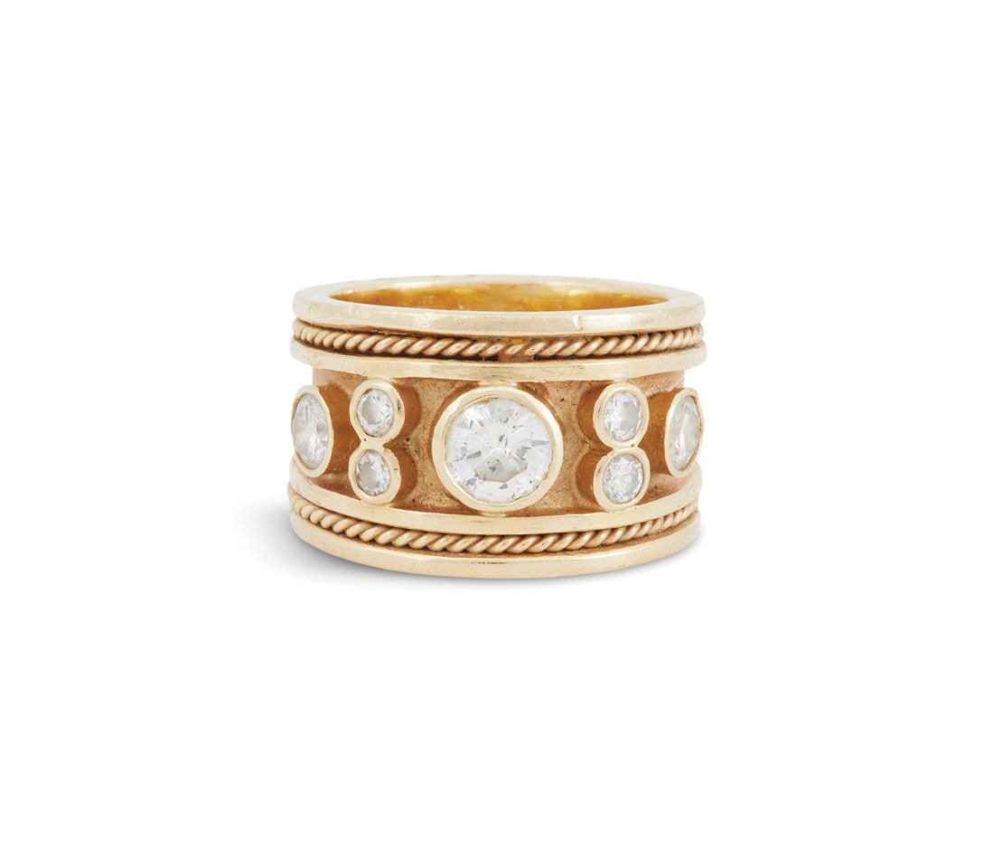 SoldA 3.35 ctw Three Stone Diamond Band in 18KVintage 18K two tone gold custom wide band featuring an Old European cut diamond weighing approx. 0.75 carat with an average color grade of H - I and an average clarity grade of VS2 bezel set in a raiSee Sold Price