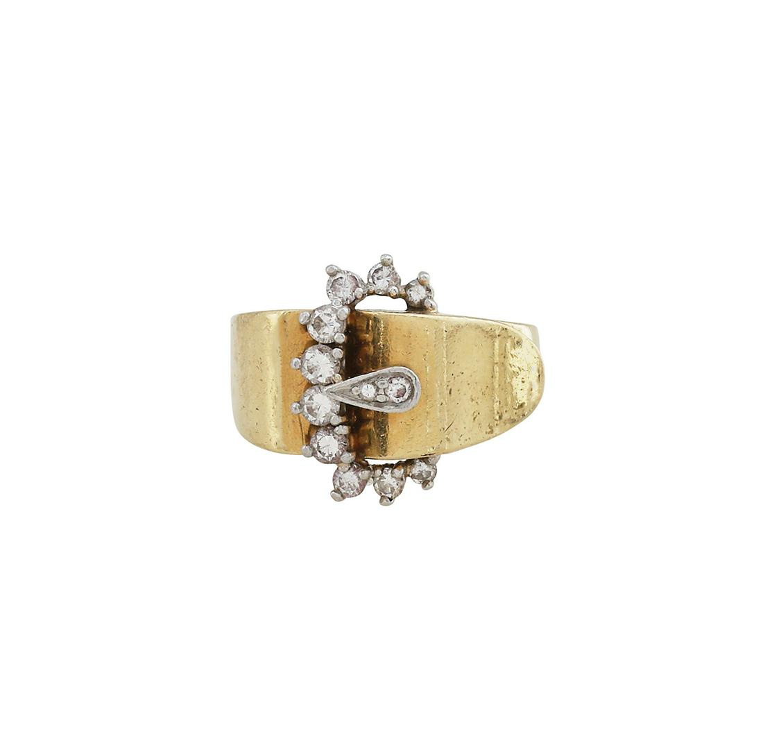 Sold18k Yellow Gold and Diamond Buckle Ring18k yellow gold and diamond buckle ring, English hallmarks for 1923, size 9. Approximately 7.1 grams TW. Provenance: Miami Beach, Florida collection. PLEASE NOTE: payment for silver, gold, jewelry, anSee Sold Price