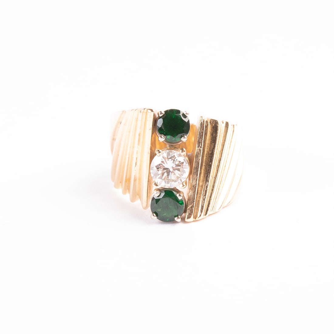 Diamond, Chrome Diopside, 14k Yellow Gold Ring.
