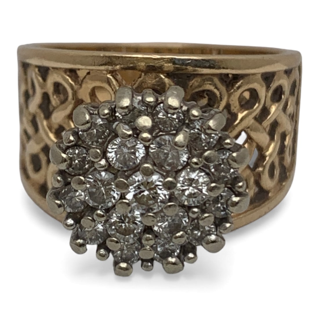 Diamond Cluster 14k Gold Filigree Ring