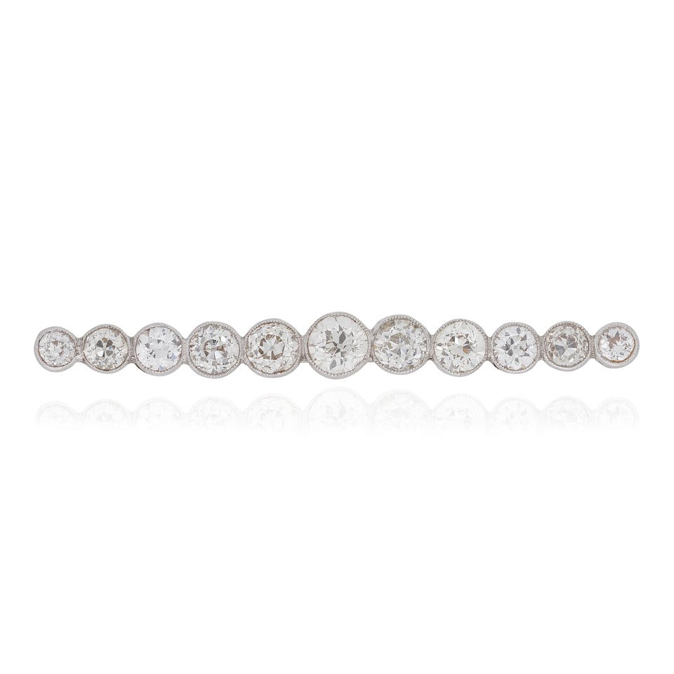 Art Deco Platinum Pin 7.50 Ct Old Mine Diamonds G-J VS1-SI1