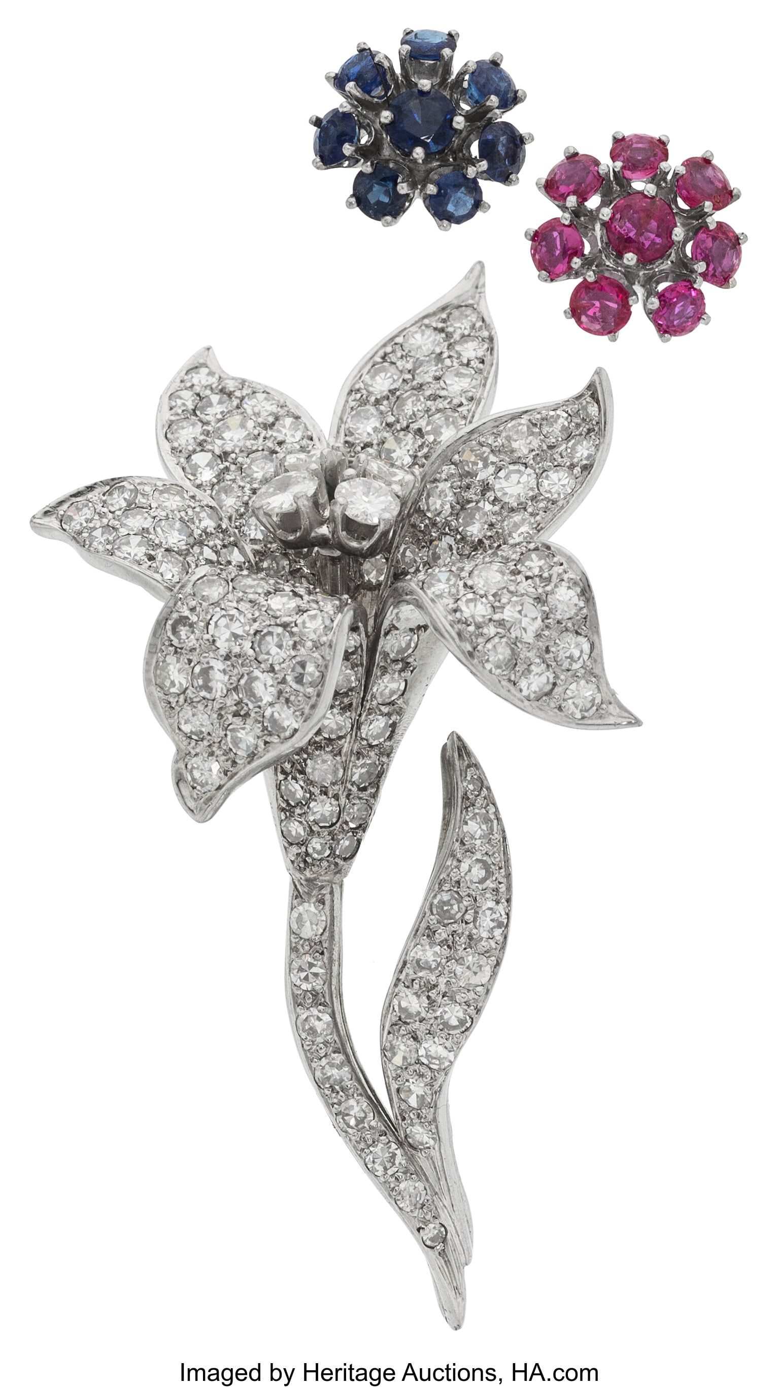 Diamond, Multi-Stone, Platinum, Palladium Brooch