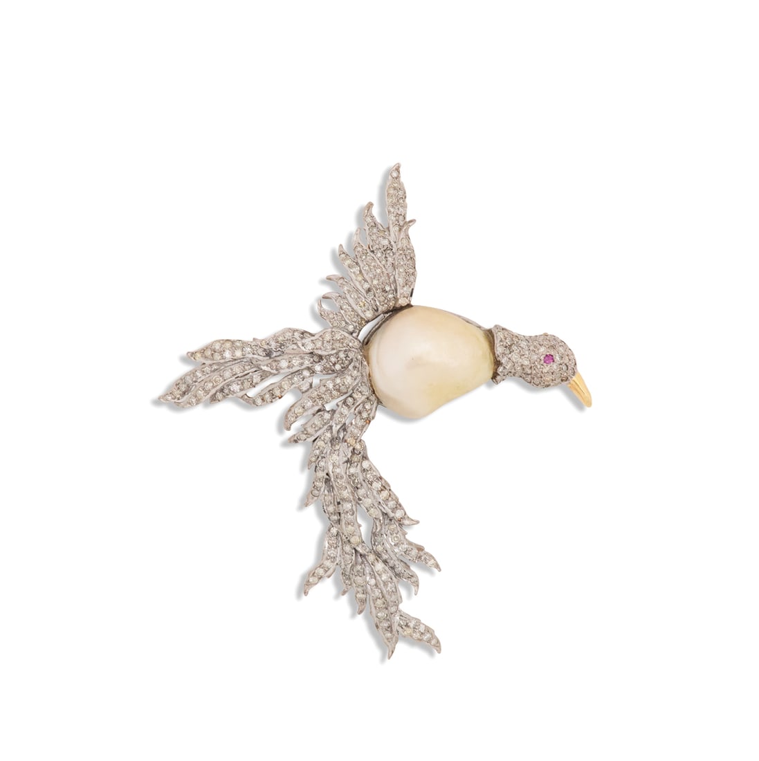 Diamond, Pearl and Ruby Bird Brooch/Pendant