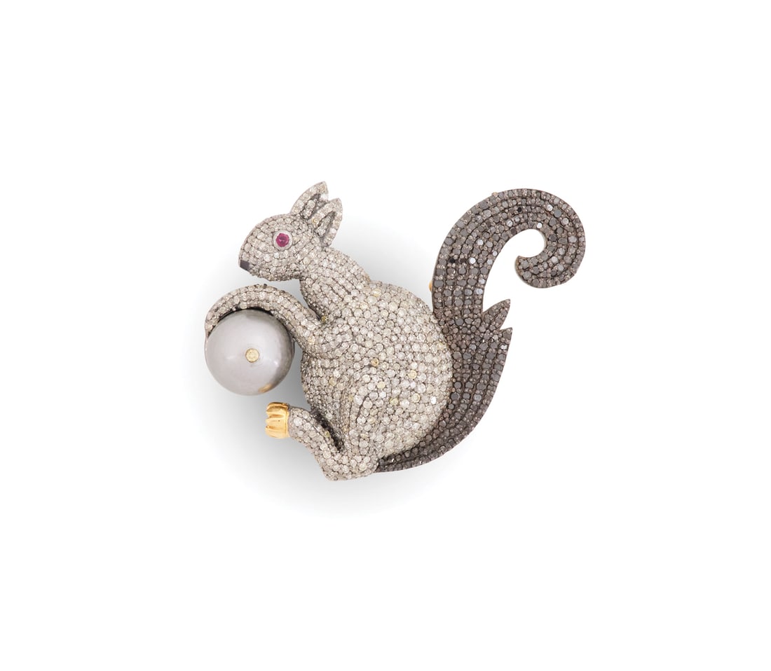 Diamond, Pearl and Ruby Squirrel Brooch/Pendant