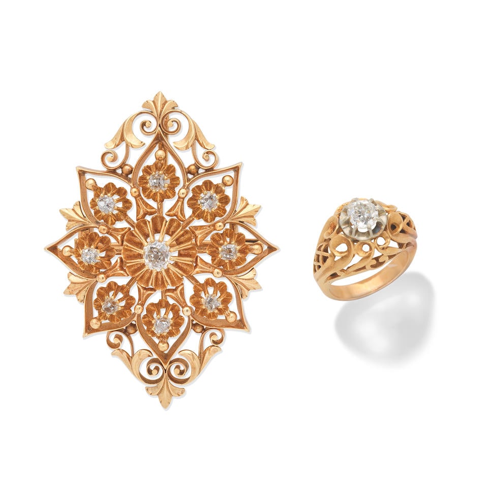 DIAMOND RING AND DIAMOND PENDANT/BROOCH (2)