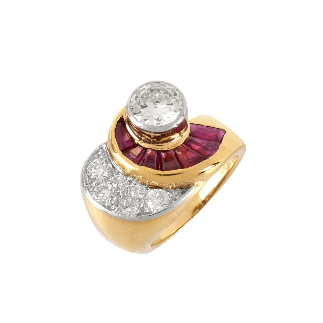 Vintage 1940's Ruby Diamond Asymmetrical Statement Ring 14K Yellow Gold, 7.27 GrChairish Auctions4.5(10.3k)$900