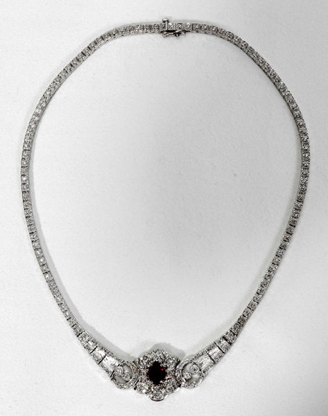090021: DIAMOND, RUBY & WHITE GOLD NECKLACE