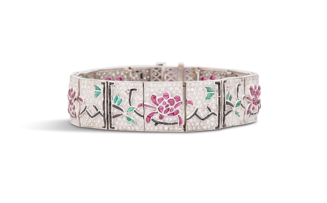 Diamond, Ruby, Emerald And Onyx Bracelet