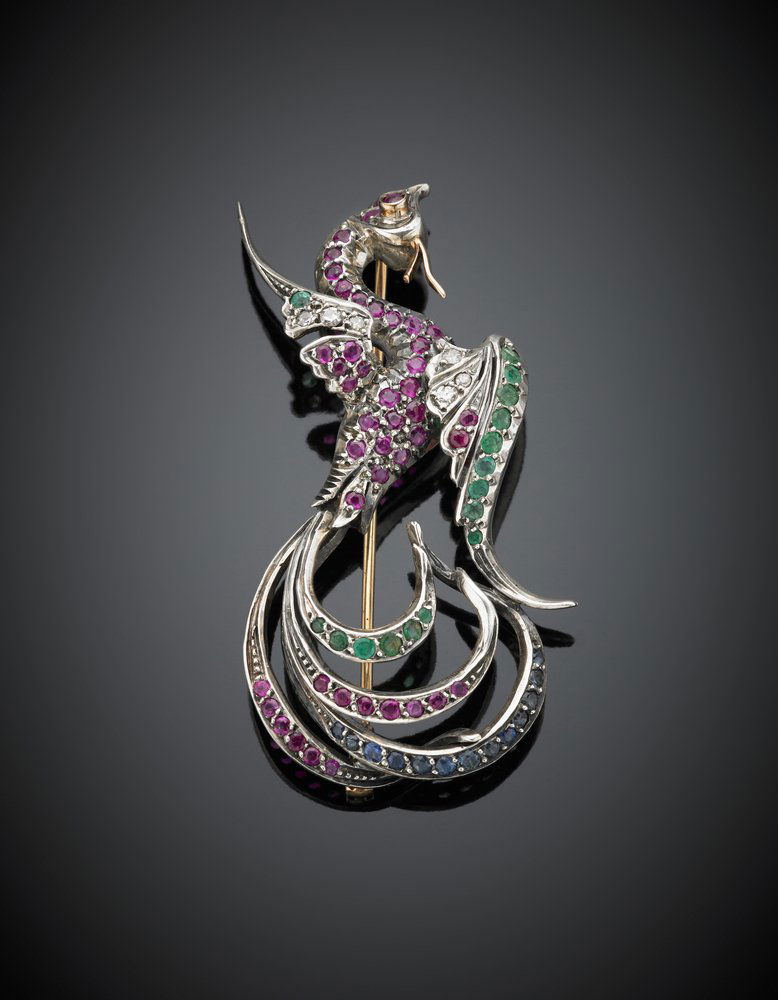 Diamond, ruby, emerald and sapphire bi-coloured gold