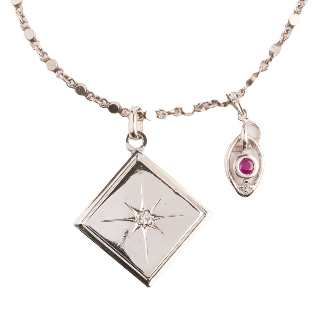 Diamond, Ruby, Platinum, Gold Double Pendant Necklace.
