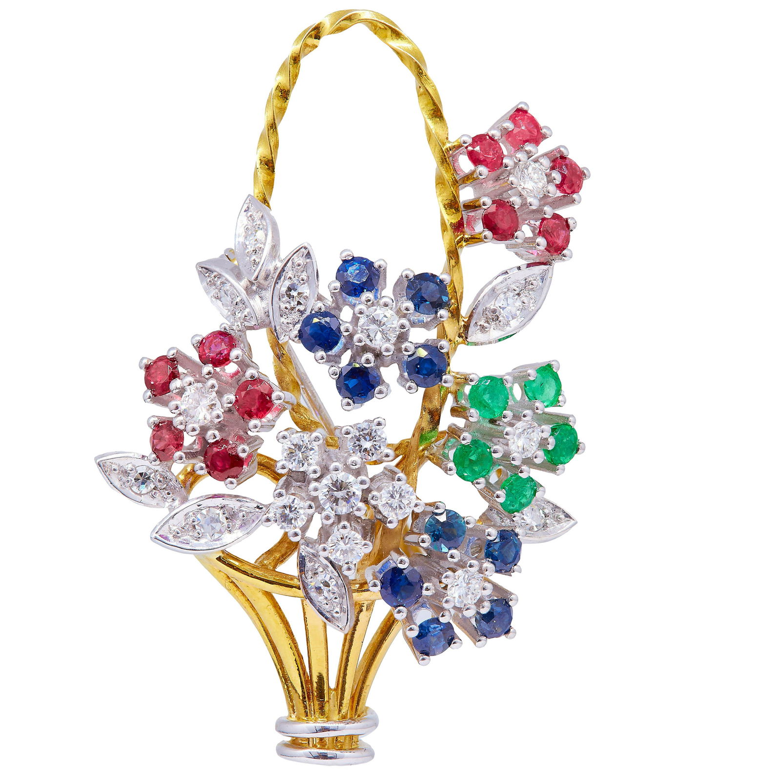 Vintage 9k Gold Floral Basket Brooch with Diamond and Multicolor GemsDiamond Depot4.3(10)$2,0506 days Left