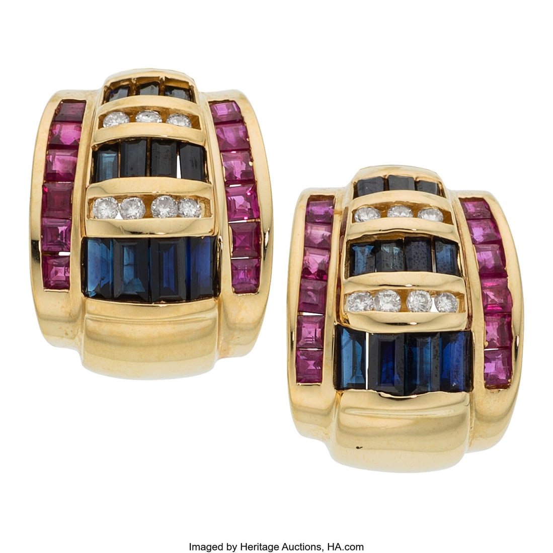 Diamond, Ruby, Sapphire, Gold Earrings Stones