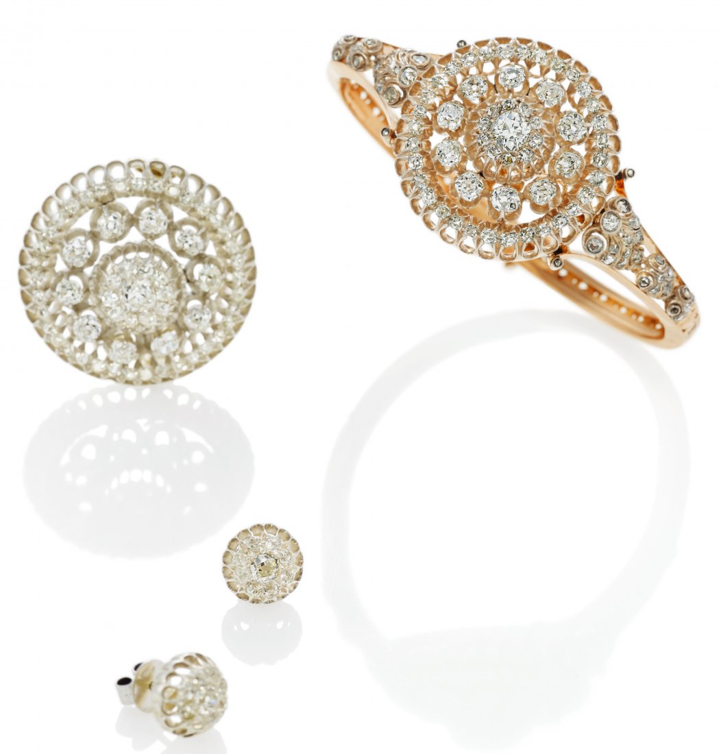 Diamond Set: Bangle, Brooch, Ear Studs