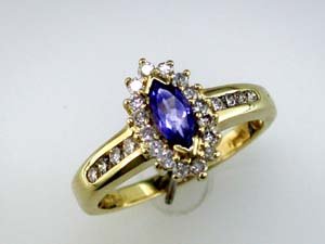 Diamond Tanzanite Ring . Features 14K Yellow Gold wit