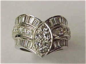 SoldLadies 14k w.g. and diamond wedding band.Ladies 14k w.g. and diamond wedding band. 21 channel set baguette cut dimaonds in full surround. Approx. 3 ct t.w. Ring size 7.5See Sold Price