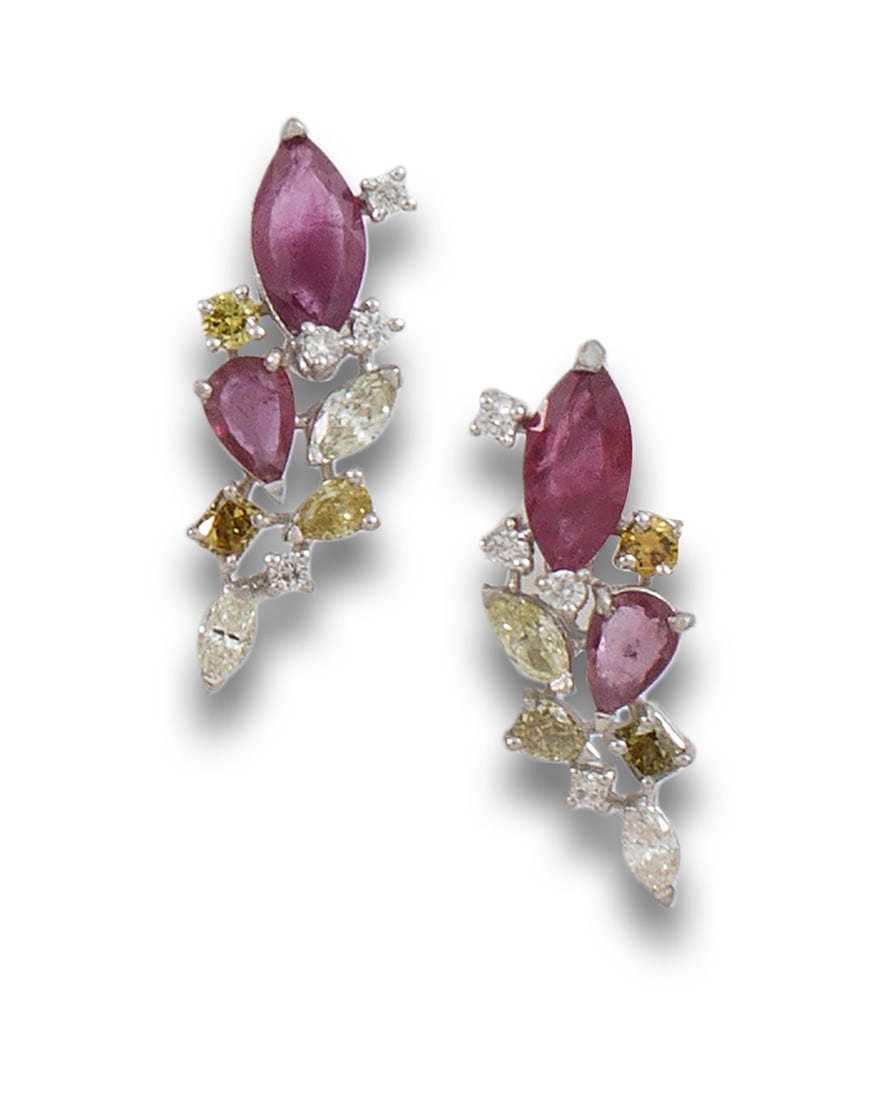 DIAMONDS AND RUBY EARRINGS, IN WHITE GOLD