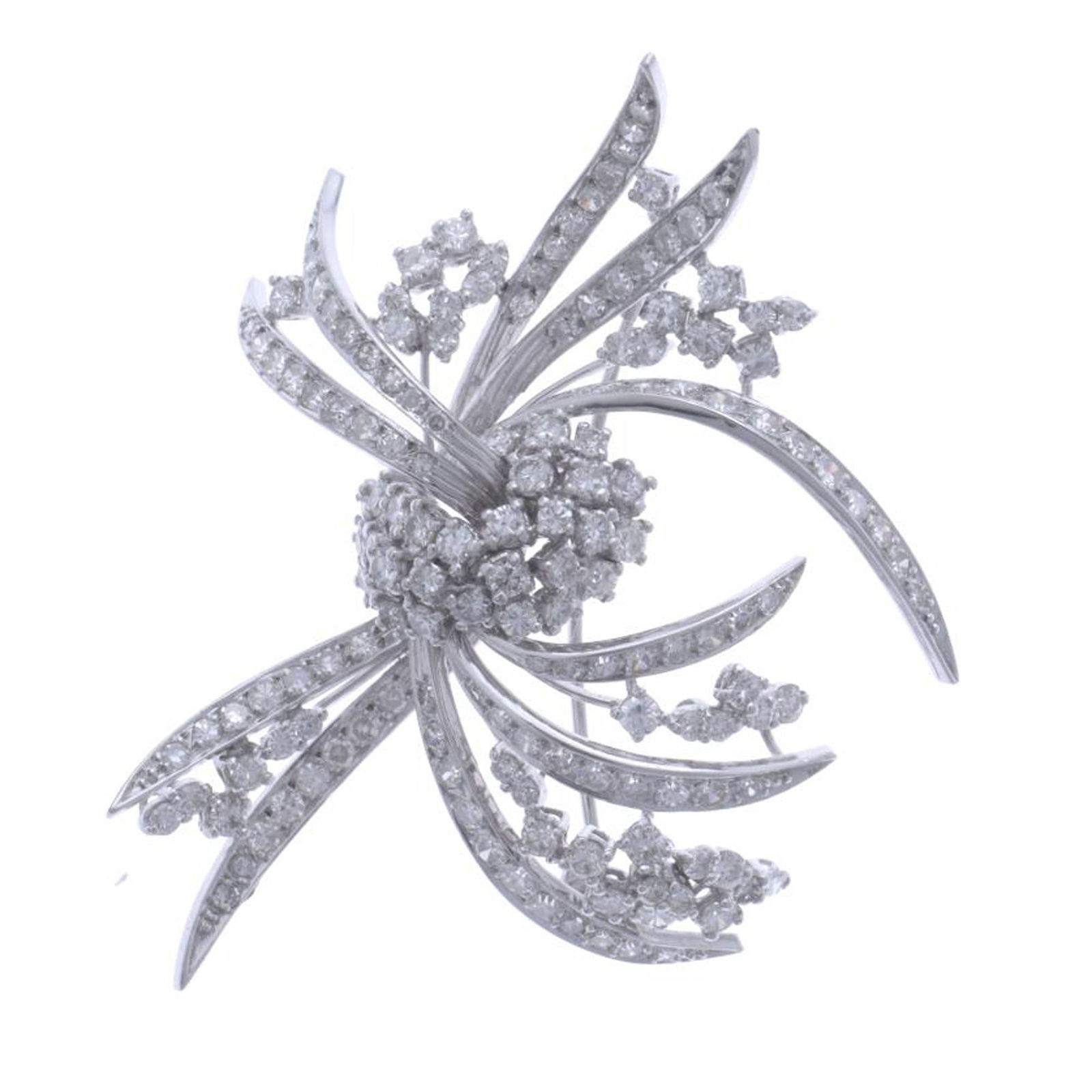 1950s Platinum Brooch with 10 Carats of Diamonds