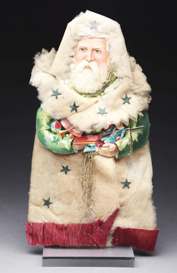 SoldFRAMED DIE-CUT SANTA CLAUSDIE-CUT SANTA WITH CREPE PAPER COAT AND FOIL STARS. SIGHT VIEW 15 1/2" L. GOLD VICTORIAN FRAME. PLEASE READ CAREFULLY - Terms for Purchasing and Shipping of Auction Items. Please read carefully beforeSee Sold Price