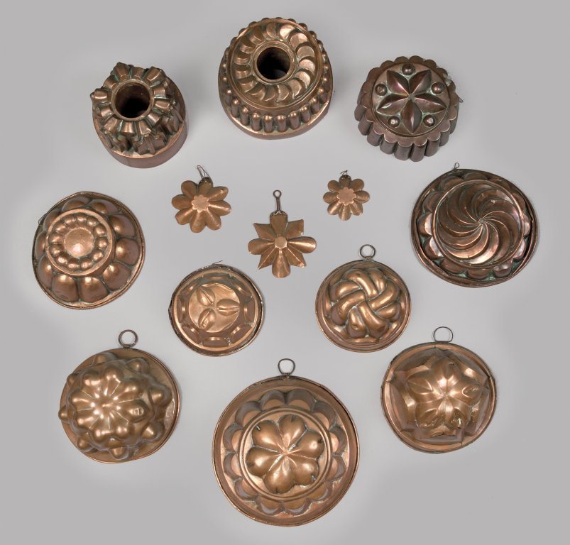 Dieci budini in rame di varie epoche, forme e