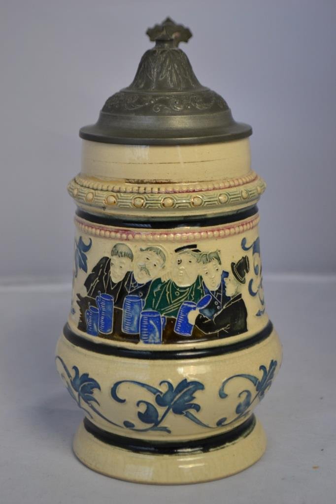 LOT OF GERMAN POTTERY, STEIN / MUG2 days LeftSmall German Beer SteinMar 17, 2026Signed Studio Pottery Vase7 hrs LeftRare Men Playing Billiards Stein w Fancy LidMar 21, 2026Diesinger City Shield & Knights Armor SteinMar 21, 2026Gerz Original Gerzit German Beer Stein Metal Silver Tone Lid Tavern Scene1 day LeftWesterwald 1791 Stoneware Stein w Stags & FloralMar 21, 2026Heidelberg Castle & Verse Stein w Turret Inlay LidMar 21, 20261L Three Portraits Relief Stein w Fancy LidMar 21, 2026Mettlach Dwarfs Drinking & Smoking SteinMar 21, 20261L Altenburg Applied Pearlwork 1759 SteinMar 21, 2026Dumler & Breiden Art Nouveau Pottery UrnMar 17, 2026Collection of Vintage German Style Beer Steins and MugsMar 05, 2026Mettlach Postman Drinking from Stein Barmaid LidMar 21, 20263-Gallon Salt Glazed Kitchen JarMar 08, 2026Regimental Drag No 15 Hagenau SteinMar 21, 2026