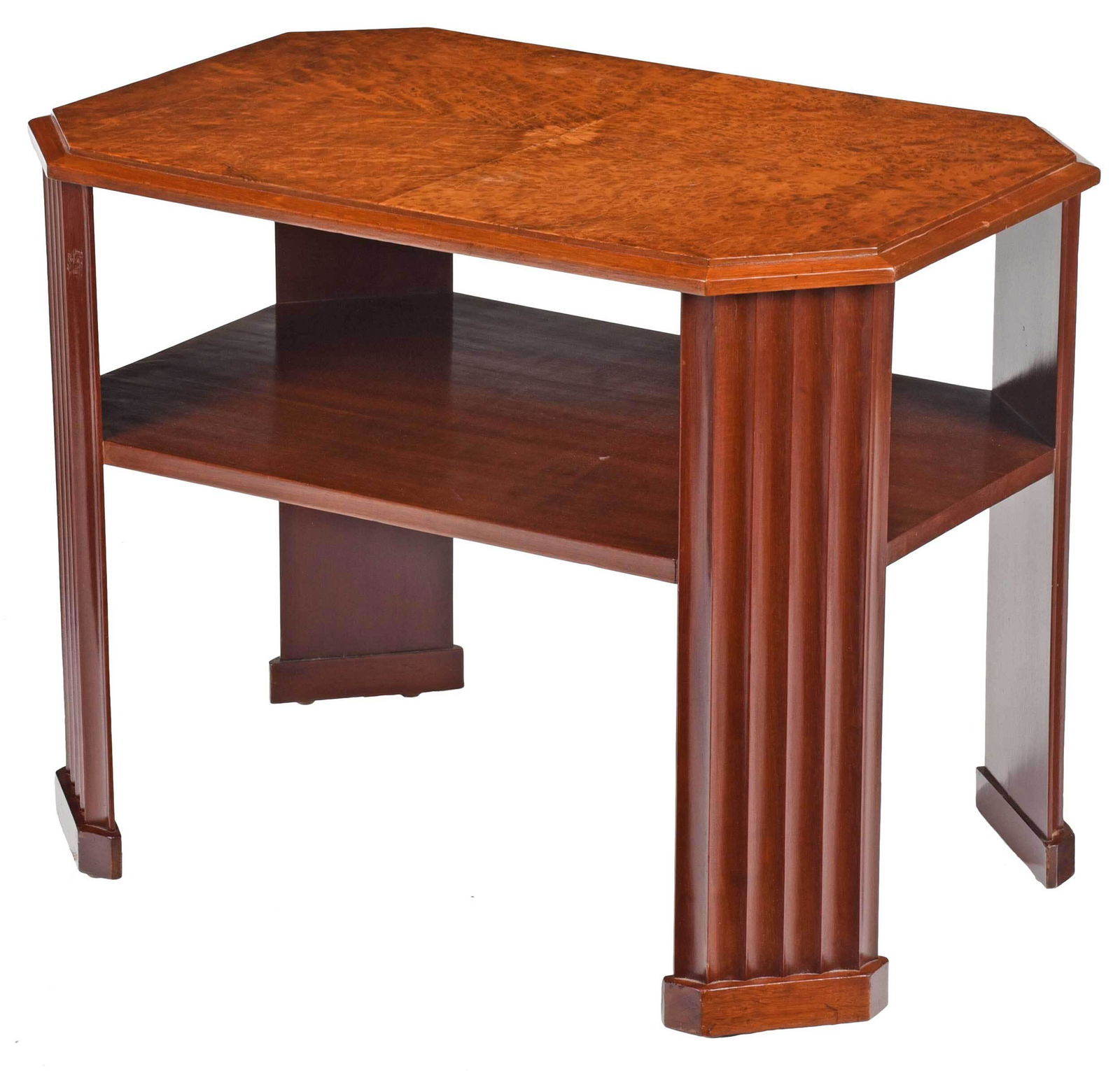 D.I.M. Attributed Art Deco Bookmatched Burlwood Table