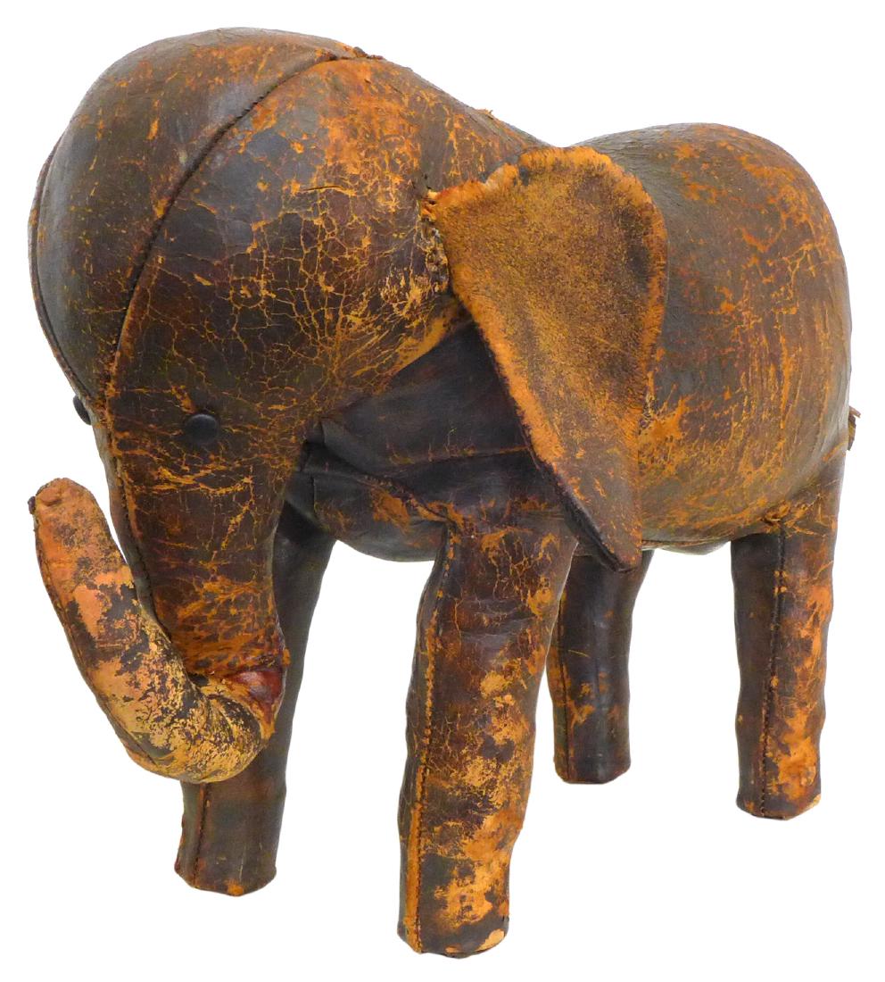 SoldDimitri Omersa, Abercrombie - Leather ElephantDimitri Omersa, Abercrombie & Fitch - Leather Elephant, stamped Made in England Dimensions: 22.5" H x 35" L Property from a Larchmont Estate.See Sold Price