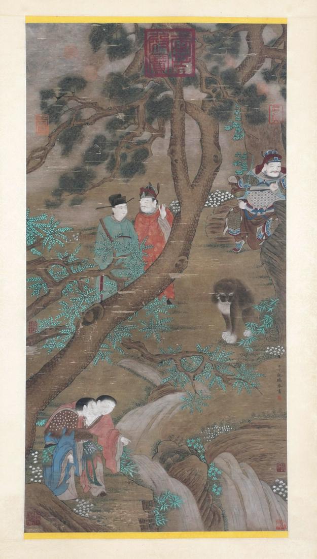 Ding Guanpeng's "Spring Mountain Safari" hanging scroll