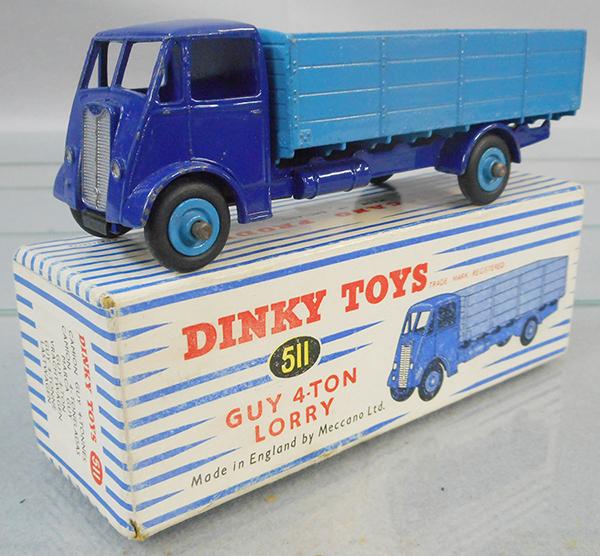 SoldDinky SuperToys 512 Guy Flat Truck and 511 Guy 4 Ton Lorry yellowDinky SuperToys 512 Guy Flat Truck and 511 Guy 4 Ton Lorry yellow, with the 511 in C7 minus with its original box that shows slight wear and the 512 in C7 with its original box that shows light wear.See Sold Price