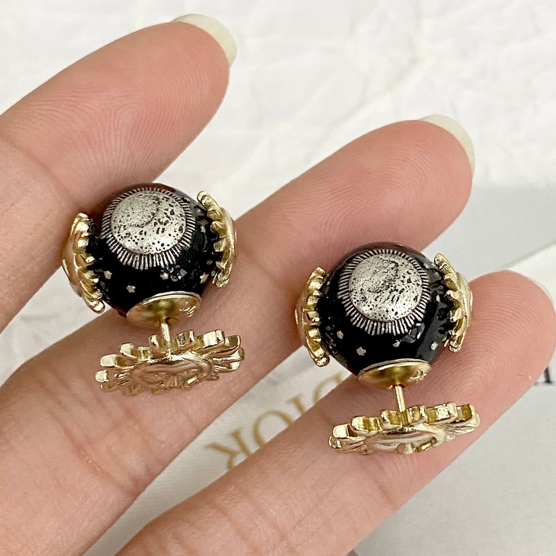 Dior Black Double Pearl Sunface Earrings