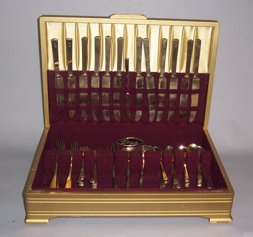 Wallace Rose Point Sterling flatware in velvet lined box, 11 knives, 12 salad forks, 12 dinnerFeb 24, 2026SILVERPLATE FLATWARE SERVICE20 hrs LeftReed and Barton Stainless Flatware Service for TwelveFeb 28, 2026Gorham Chantilly Flatware Sterling Silver Silverware 70 Pieces3 days LeftSheffield 1996 by Carr's A cased Elizabeth II sterling silver table service of flatware / canteen2 days Left55 Piece Sterling Silver Wallace "Saxon" Flatware SetFeb 28, 2026Lunt William & Mary Sterling Silver Flatware Set for 8 46 pcs with Storage ChestFeb 27, 2026David Andersen Town Hall 830 Silver Flatware Set 65 Pieces with New Storage Chest2 days LeftTowle Legato Sterling Silver Flatware Set 48 Pieces for 12 with Storage Chest1 day LeftTOWLE "GOLD ARISTOCRAT" GOLD-PLATED FLATWARE SET7 days LeftTuttle Sterling Silver Flatware SetFeb 24, 2026Lunt Memory Lane Sterling Silver Flatware Set 46 Pieces with Storage Chest1 day LeftReed and Barton Dancing Flowers Sterling Silver Flatware - Set of 55Jul 11, 2025Reed and Barton Dancing Flowers Sterling Silver Flatware - Set of 55Jun 29, 2025Reed and Barton Dancing Flowers Sterling Silver Flatware - Set of 55Jul 20, 2025Tuttle Hannah Hull Sterling Silver Flatware Set 36 Pieces for 6 with Storage ChestMar 04, 2026