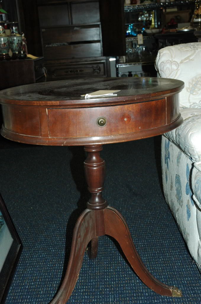 Mahogany Tooled Leather Top Drum Table with Two Drawers by FergusonLangston Auction Gallery4.7(543)$130(2 bids)2 days Left