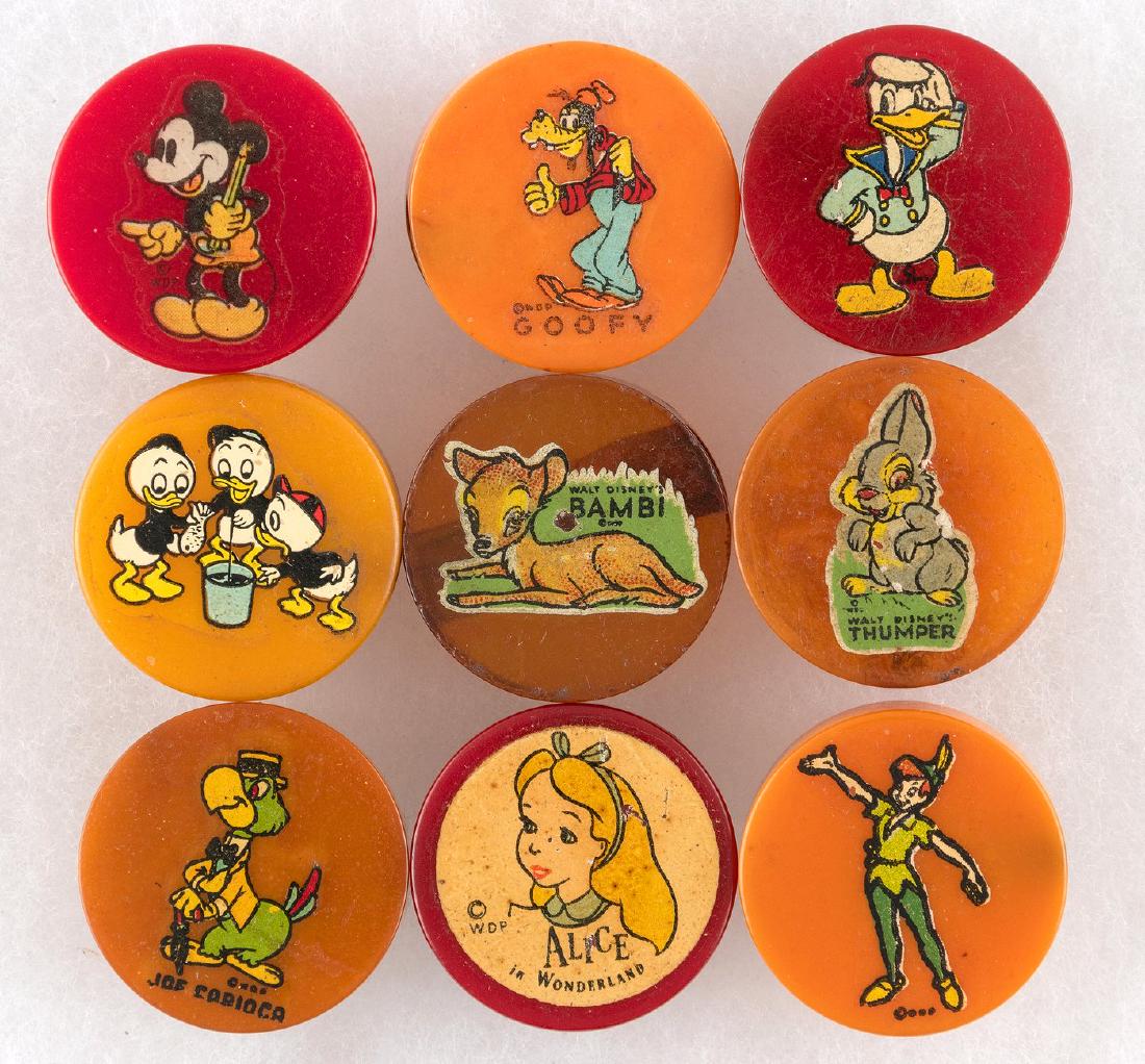 DISNEY CHARACTERS (9) ROUND CATALIN PLASTIC SHARPENERS