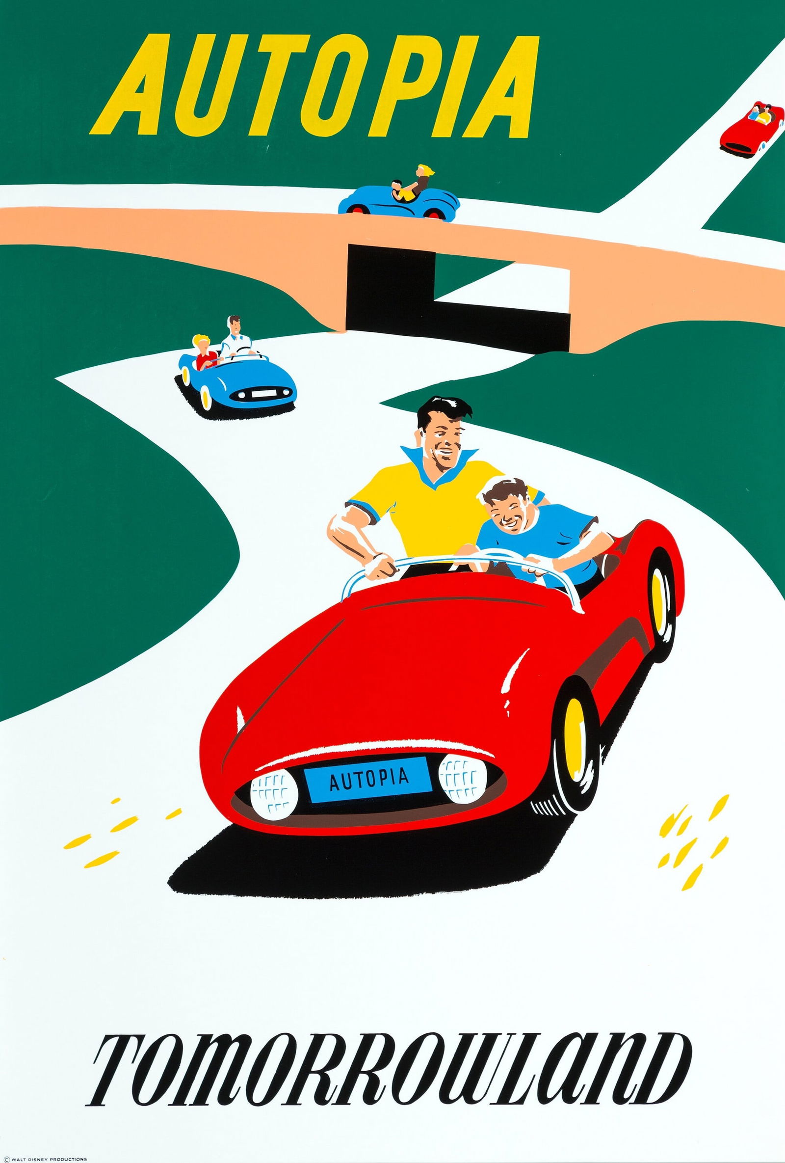 SoldARONSON, Bjorn. Autopia. Disneyland, ca. 1950s.ARONSON, Bjorn. Autopia. Disneyland, ca. 1950s. Hand-pulled silkscreen poster depicting the Autopia attraction at Tomorrowland, today the only existing attraction which dates back to Disneyland’See Sold Price