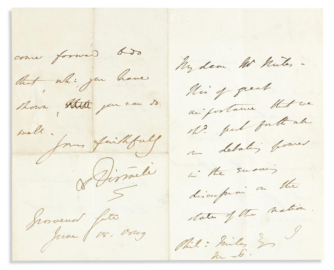 DISRAELI, BENJAMIN. Autograph Letter Signed,