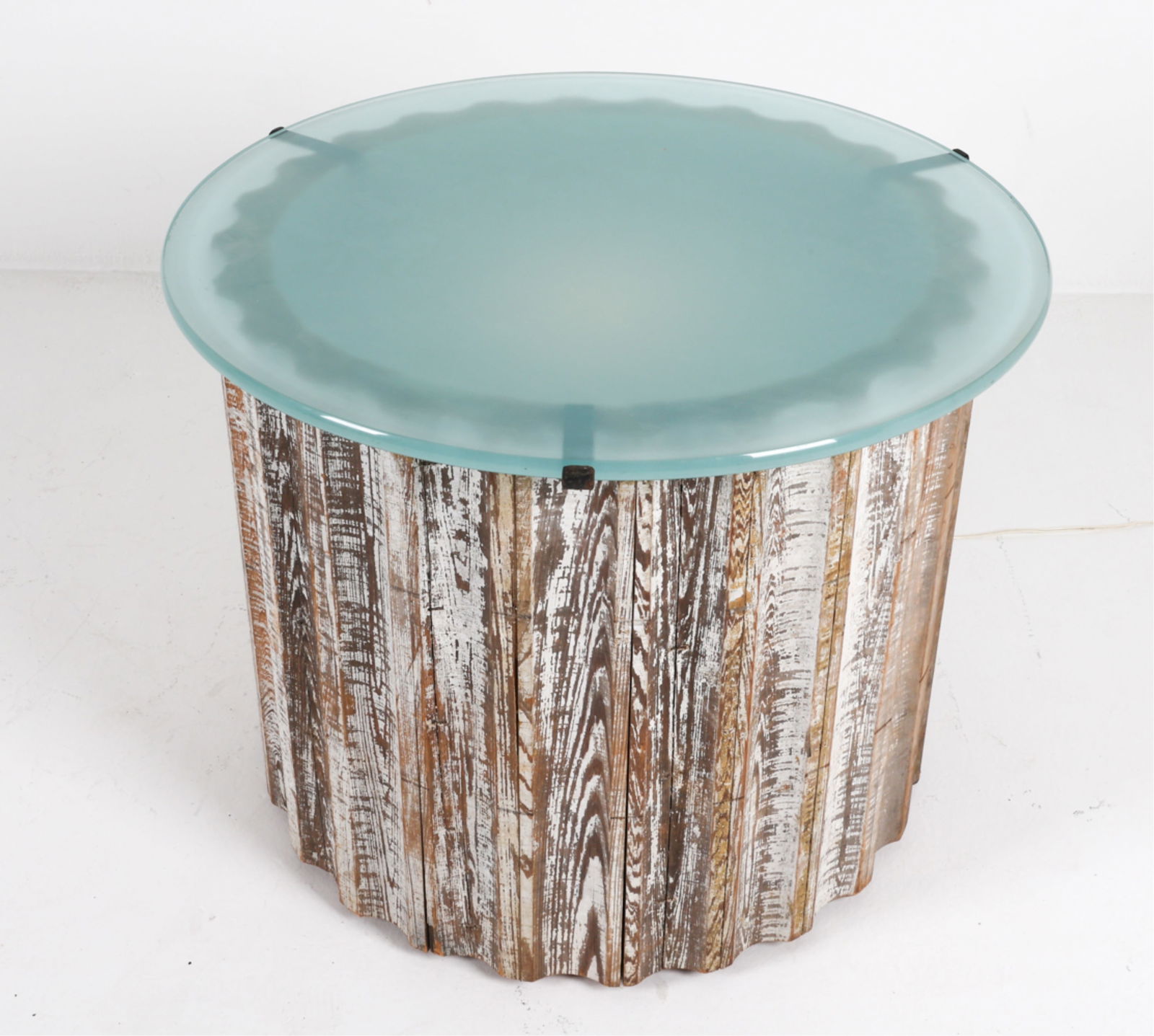 DISTRESSED PINE & GLASS ILLUMINATED TABLE