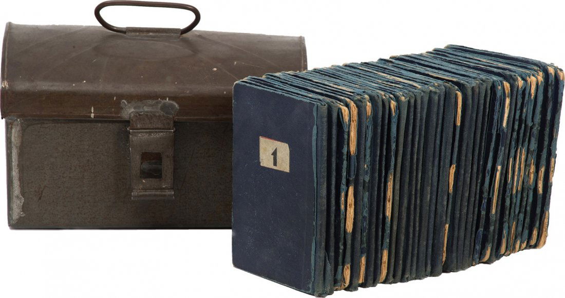 SoldAntique divided box filled with signs, brass & copper stencils, etc box is 8 1/2" tall x 9 1/2"x8Antique divided box filled with signs, brass & copper stencils, etc box is 8 1/2" tall x 9 1/2"x8 1/2"See Sold Price
