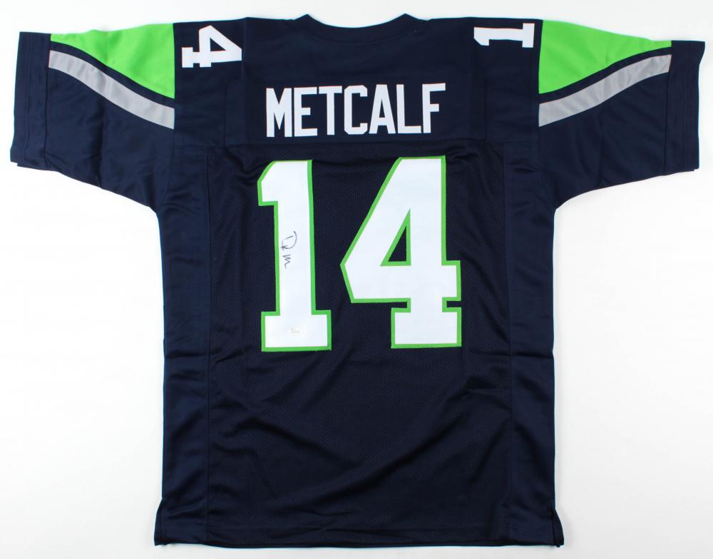 SoldDK Metcalf Signed Jersey (JSA COA)Custom on-field style jersey. Everything is sewn on, size XL. Has been hand-signed by DK Metcalf.The lot / autograph(s) includes an official James Spence Authentication (JSA) hologram and matching COASee Sold Price