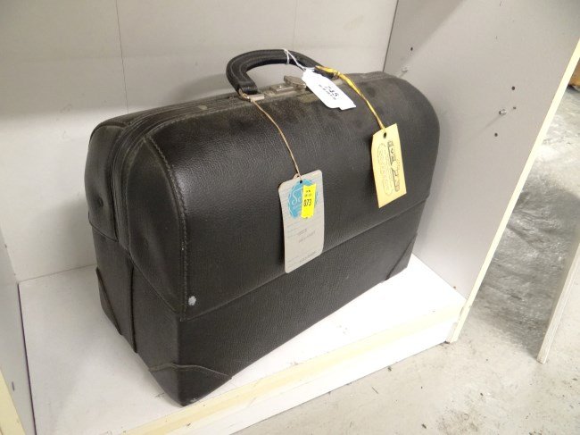 SoldLeather Doctor's BagLeather Doctor's Bag With brass plaque inscribed: Dr Huw Walters / Carmarthenshire, South Wales / Dutch East India Sports Club, London. Width 27 1/2 inches. CSee Sold Price