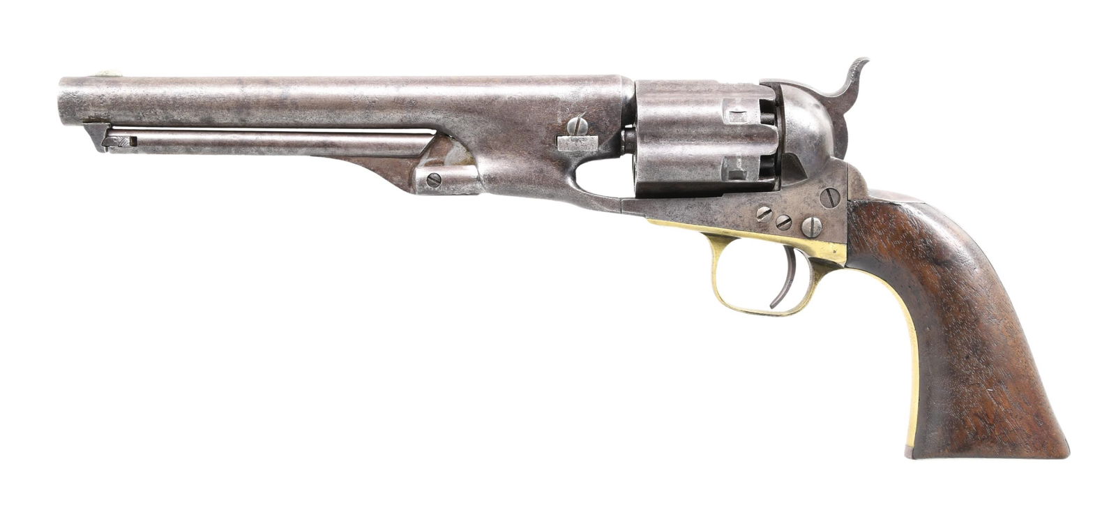 Antique Colt SAA Revolver, SN 133673 in .44/40 caliber with etched panel, manufactured circa 1890.Mar 28, 20261 of 2 Consecutive numbered Colt SAA Revolvers, SN 354031, 1st generation, circa 1930. Info shows itMar 29, 20261 of 2 Consecutive numbered Colt SAA Revolvers, SN 354030, 1st generation, circa 1930. Info shows itMar 29, 2026US COLT SINGLE ACTION ARMY CAVALRY REVOLVERMar 22, 2026COLT MODEL 1860 4 SCREW ARMY REVOLVER MFG 1861Mar 21, 2026Colt Model 1849 .31 Cal Percussion Cap Revolver1 day LeftRemington New Model .44 Cal Single Action Army1 day LeftCOLT MODEL 1860 ARMY REVOLVERMar 22, 2026Civil War Martial Colt Model 1860 Army .44 Cal Percussion Revolver Made in 18621 day LeftColt SAA 2nd Gen Revolver, .45 caliber, SN 81424SA, 7 1/2" barrel, two-piece hard rubber stocks,Mar 29, 2026COLT ACTION ARMY REVOLVERMar 22, 2026COLT NEW FRONTIER SINGLE ACTION ARMY REVOLVERMar 21, 2026U.S. STAMPED COLT SINGLE ACTION ACTIONMar 22, 2026Antique C. Sharps, Breech Loading, Saddle Ring Carbine, .52 caliber, SN 83484, lock is marked "C.Mar 29, 20261ST GEN COLT SINGLE ACTION ARMY IN 41 COLTMar 21, 2026CIVIL WAR COLT MODEL 1851 NAVY REVOLVERMar 21, 2026