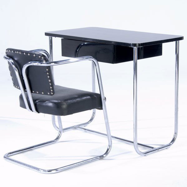 MODERNIST TUBULAR STEEL CHILD'S CHAIR AND GLASS TOP CONSOLE TABLE.Amelia Jeffers, Auctioneers & Appraisers4.6(175)$502 days Left