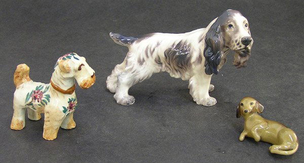 Sold(5) Porcelain Dog Figures(5) Porcelain dog figurines, c/o Bing & Grondahl (B&G) Pekinese, Nymphenburg dog with frog, Belleek Scottish Terrier, Royal Doulton injured Cocker Spaniel, Royal Doulton begging ScottieSee Sold Price
