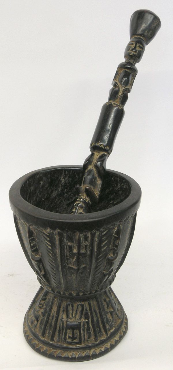 BRONZE MORTAR/PESTLE (SHELL MOTIF), C. 1700, MORTAR