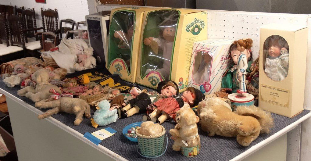 Toy LotFeb 21, 2026Lot of Vintage World Dolls7 days LeftLot of Mixed Dolls7 days LeftMadame Alexander & Effanbee Dolls 7pc LOT23 hrs LeftMisc. estate lot to include pottery, ceramics, old fish decoys, leather pouches, military pouch,2 days LeftLot of 2 Mechanical Dolls7 days LeftLot of Antique to Contemporary Dolls7 days LeftLot of Vintage to Contemporary Dolls7 days LeftArranbee, Alexander & Other Girl Dolls 8pc LOT23 hrs LeftMixed Lot of Dolls and Barbie Accessories7 days LeftLot of 3 Vinyl and Porcelain Dolls7 days LeftLot of 5 Goebel Hummel Porcelain Dolls7 days LeftLot of Vintage Vinyl, Composition, and Plastic Dolls7 days LeftLiala Italy, Pleasant Co & Others Dolls 7pc LOT23 hrs LeftLot of Vintage Plastic and Vinyl Dolls7 days LeftEstate lot older toys to include lead soldiers, Santa, marbles, and battery operated Santa in2 days Left