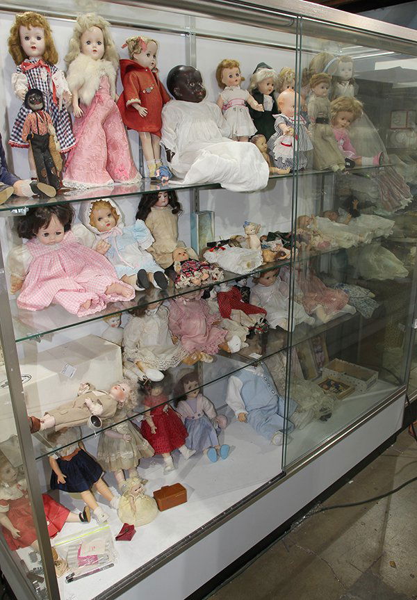 Sold(Lot of 90+) Four shelf doll group, consisting of(Lot of 90+) Four shelf doll group, consisting of bisque, composite and porcelain dolls, including Effanbee, Ideal, Cupie, etc., together with adjustible doll props, largest: 31"l, Property from the cSee Sold Price