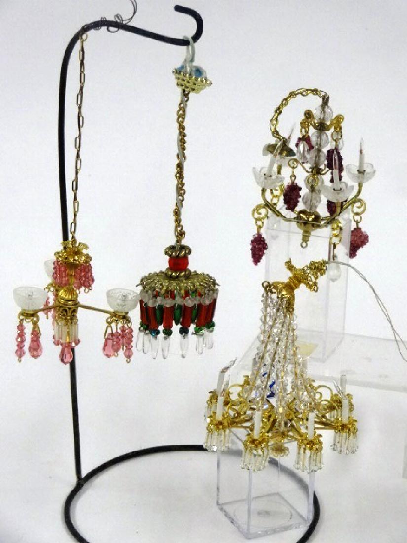 SoldDollhouse Miniature ChandeliersFive dollhouse miniature chandeliers, 2 1/2 in. largest, all complete w/shadesSee Sold Price